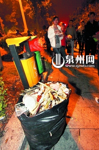 泉州狂欢元宵扫出百吨垃圾 提倡市民自带垃圾袋