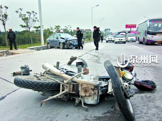 324国道惠安段 小轿车摩托相撞造成一死一伤
