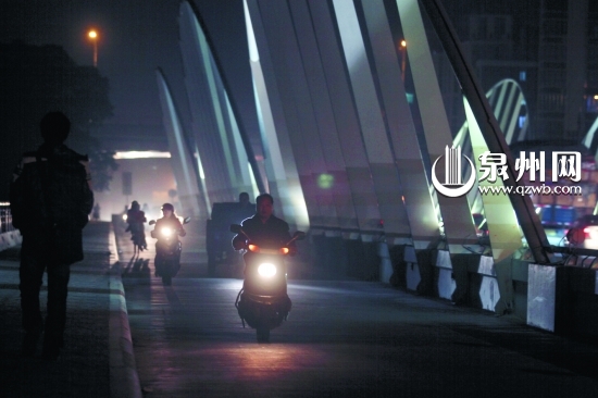 泉州笋江桥上照明灯遭破坏 夜间一侧“暗摸摸”