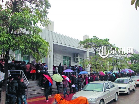 昨日上午10时许,天空下起小雨,南安大霞美驾考体检中心体检室门外人头攒动,几十名报名参加驾照考试的学员撑起伞,排起了长队,准备参加驾照考试前的体检。市民小郑说:“最近报名参加驾考的人实在是太多,我早上7点多就到这里准备参加体检,排了近3个小时,还没轮到我。”