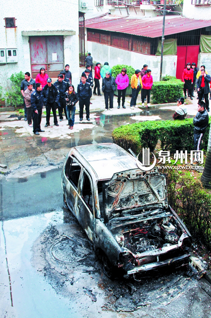 市区泉秀新村小区内停一年 小车昨下午离奇自燃