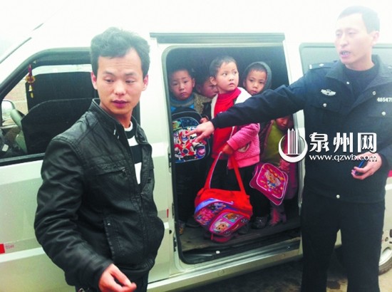早报讯 (记者陈彦琳 通讯员陈志伟 文/图)2月21日,安溪县龙涓派出所民警“偶遇”一辆超载校车,车子里满满当当塞进了27名幼儿,连同司机、老师,原本核载7人的面包车装下29人。