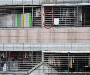 东美花苑12栋,四个防盗窗中,只有一个设有逃生门