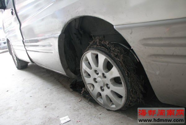 逃跑中,西安翻车的后轮只剩轮毂子