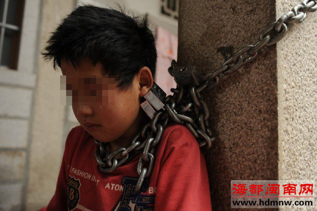 东南网-海都闽南版4月11日讯(记者 史国亮 田米)星期二的上午,本是上课时间,但12岁的小山(化名),没有坐在课堂里,而是被大号的锁链锁在石柱旁,盯着眼前的一碗红薯掉眼泪。