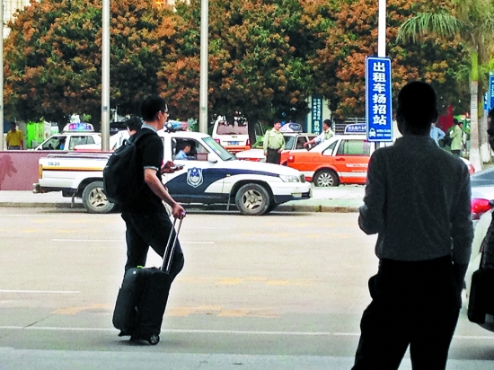 虽有执法人员在场,一些出租车司机还是坐地起价,旅客质疑现场监督走形式。