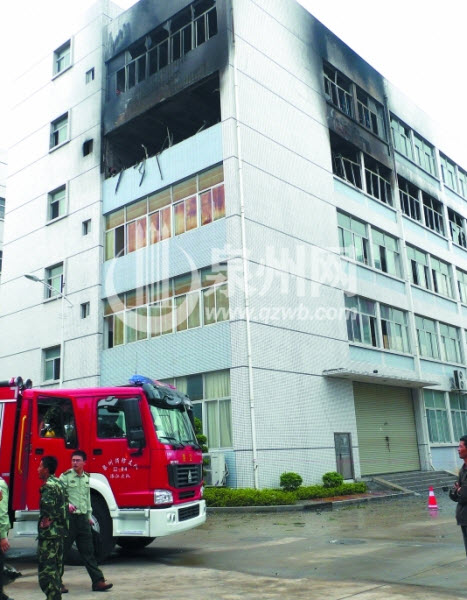 大楼四、五层的外墙被熏黑