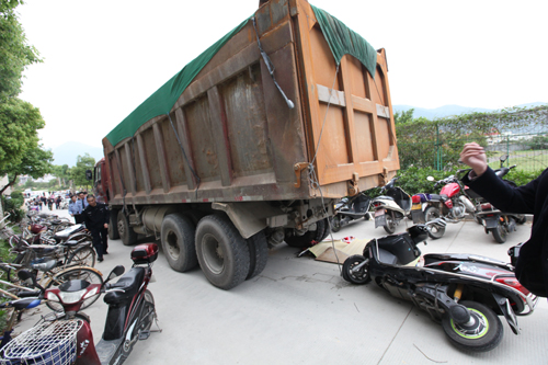 据悉,肇事土方车当时正运沙到男生宿舍后的工地上,该校老师说,那在建学生宿舍,已建半年了,那条坡路是土方车必经之路,学生们反映,平时前往此处取车都觉得颇为危险。