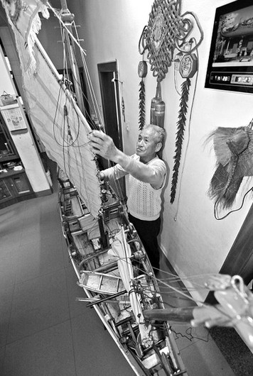 黄初宗今年77岁,造船的手艺没断过 □说汝知影 峰尾镇圭峰文化研究会副会长刘宗训: 泉港峰尾黄氏的“福船”制造技艺在获得省、市文化遗产名录的基础上,正在申请国家级第三批“非遗”项目保护。 “黑舶五青案”船型、船模,便是黄氏造船世家传承下来的最有特色的船体及传统工艺,也是泉州古船模的代表作。外观最大的特点是沿用宋、元、明时期官船上“枪堰”,远望很像古代官船,能够以假乱真,令海盗胆战心惊。 全船使用的是“十二生肖”暗示标记法。船头称虎口,滑轮索叫猴头,安放船帆支架处叫猪架。每个地方都有记号,能让水手快速找到自己的岗位,各司其职;船长也能以“十二生肖”中的喻称下达指挥口令,让船在海上安全航行。 而黄初宗所制作的“黑舶五青案”船模,是泉港现存最精美、最完整体现古船模技艺的一艘船模。 |