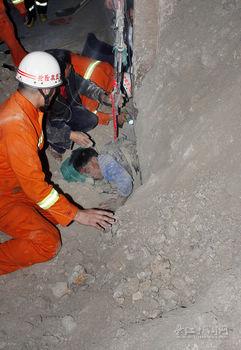 18时35分,由于男子被压区域空间狭小,且土方车重达20余吨,普通救援设备根本无法操作。但男子身上压着的泥土已被救援人员用手一点点扒开。男子被压情况逐步清晰,神智也开始清醒。