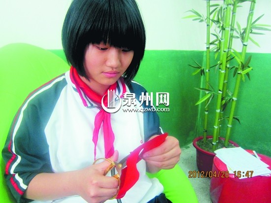 因为手艺精巧,六年1班的郭冰冰在家做鞋子剪纸的时候,郭爸爸开心地表示,家里以后可以开鞋版厂了。