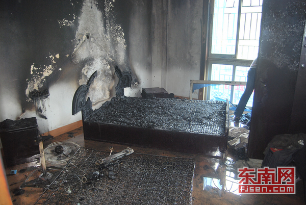 房间主卧被烧得面目全非