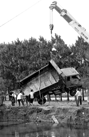 事发后,工人们动用了两部抽水泵抽水,截至昨天中午1时左右,3米深的水塘下降了1米,几名工人又开始拿锄头拓宽田埂,很快,一部大型吊车驶进田埂打捞货车。下午3时30分左右,货车被顺利吊至田里。整部车子从外观看,除货箱轻微变形外,其余均无恙。