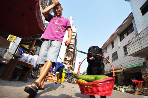 泉州浦西菜场有条狗狗会买菜 叼着篮子惹人爱