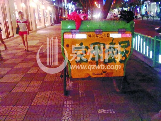 5月12日晚,记者途经市区打锡街,看到一辆环卫车上标有“空军一号”四个字。