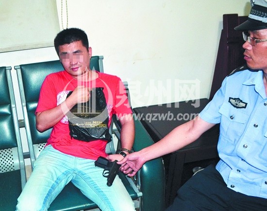 这时,民警发现该车司机吴某身上酒味很重,便要对方下车跟民警回中队接受酒精测试。不料吴某下车时,身上竟掉下一把铁制手枪,民警当即将吴某连人带枪控制住,随后又从轿车后备箱中搜出一把开山刀。