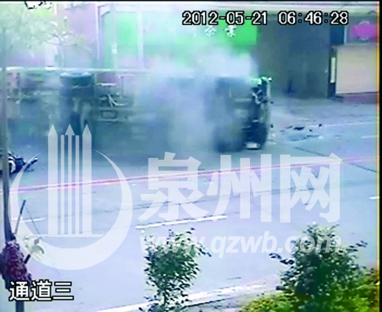 - 2012-05-17泉港南埔镇过溪村 一辆摩托车撞上货车起火