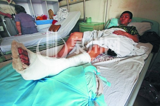 郭凤强瞬间跌倒在地,然而,紧张的救援氛围让他默默忍受着疼痛,甚至不忍呼唤同伴,担心耽误救援。休息三四分钟后,他忍痛站立,单脚跳出火场。这时,战友发现,郭凤强的脚不断往外冒着血,在战友的提醒下,他才意识到伤情的严重。随后,战友将其送往安海医院救治。