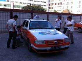 “你后座车窗旁贴的这个燃油附加(即相关收费标准)已经过时了,要马上更换新的。”昨日下午,稽查队一行来到石狮市出租汽车有限公司时,正值的士司机在交接换班。根据交通部门的暗访及部分乘客的投诉反映,出租汽车的外观及内饰不规范是一大问题。稽查队执法人员现场随机抽查了几部车辆,总体情况良好,但仍发现有车辆车厢内张贴的内容过时,另一的士车身两侧的喷印内容也不符合规范。检查人员当场要求相关的士司机应马上整改。