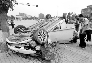 陈师傅介绍,事发时,估计小车车速不会少于80公里每小时,车子倒地后发现司机和一名乘客困在车里出不来,我和附近一些好心路人砸开玻璃把人救了出来。