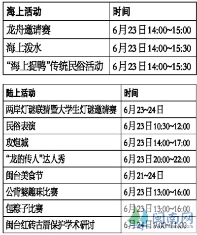 按照方案,今年第六届闽台对渡文化节暨蚶江海上泼水节时间是6月22日至24日,地点在石狮市蚶江后垵澳古渡头(沿海大通道蚶江段),除了11项岸上海里的活动外,还有啤酒节、励志电影、摄影大赛、两岸书画作品展等多项配套活动。
