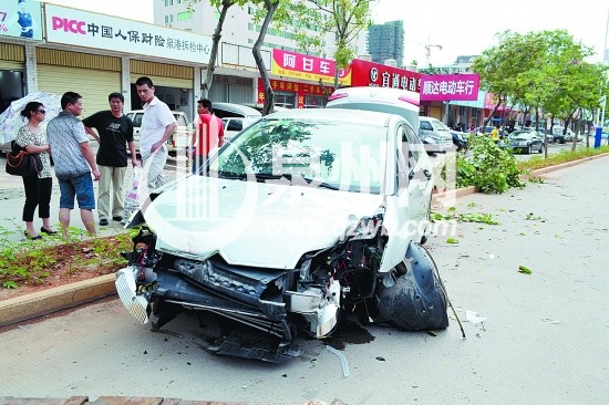错将油门当刹车 泉港一小车撞上绿化带(图)