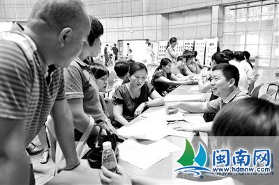 昨天上午9时不到,泉州七中现场咨询会门口,就有家长早早在那等候。