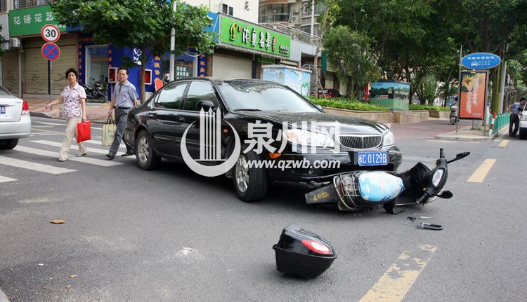 刺桐路与津霞街路口 小车撞电动车后弃车而逃