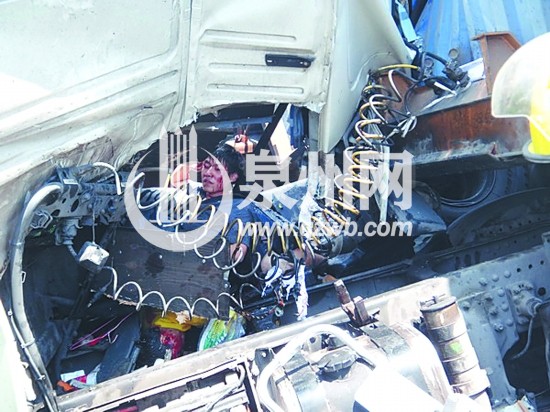 高速交警接警后,在第一时间赶到现场,同时通知120医护人员、119消防官兵赶赴现场救援。救援人员赶到现场时发现,大货车内一人已当场死亡,另有一人受伤,受伤人员随后被送到泉港的医院救治。