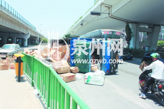 - 2012-06-13挂车货物倾翻 200多布匹锁了沈海高速泉州出口