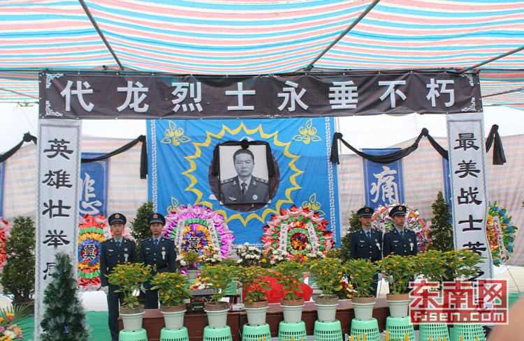 东南网7月15日讯(本网记者 谢玉妹)7月9日,驻闽某部队通信班班长代龙,在永春岵山镇南林山农场执行任务时,因奋不顾身勇救溺水少年,而光荣牺牲。据悉,南京军区已批准他为烈士。昨天上午,代龙烈士追悼会在永春县医院举行,战友们和社会各界人士一起挥泪送别了这位“最美战士”。