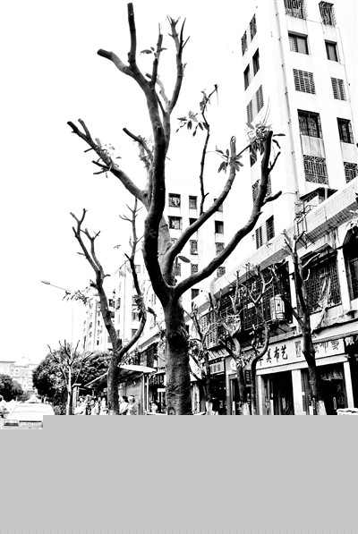 昨日,在靠近泉州中医院一侧的公交站台边,近20棵行道树被剃了光头,附近等公交车的乘客又少了个遮阳物。泉州市园林局园林绿化所相关负责人王先生称,由于温陵南路和泉秀街两边4个公交站点都要改造成港湾式候车亭,这些树都要移植走,现在是先将枝叶修剪掉,以便运输和提升成活率。