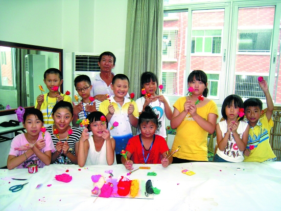 金龙、猴子、玫瑰花……记者走进该馆培训中心现场时,10多名小朋友正在民间艺人张明铁的指导下进行泉州妆糕人的创作,形式各异的作品展示了小朋友丰富的想像力和灵巧的动手能力。李溪正小朋友拿着刚做好的“玫瑰花”对记者说:“第一节课的时候老师教我们做了一个‘猪八戒’,那时候我做了好久才做好,现在我已经会做好几种妆糕人了。”