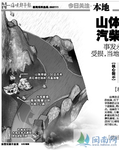 昨日凌晨3时15分许,永春县下洋镇下洋村天湖山矿区山体突然溜方,导致油管破裂,19吨柴油、12吨汽油顺水流到下游一排商住宅。随后,起火爆炸,6间房受损。 |