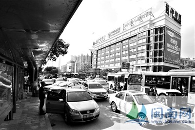 - 2012-02-17出租车违停拉客 泉州坪山路刚改造完又堵上了