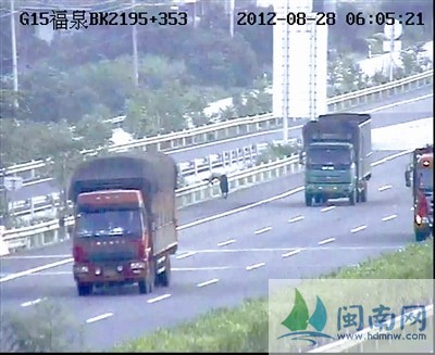 余先生说,快车道上停的是一辆满载钢筋的大型货车,无任何警示标志,情况十分紧急。6时许,泉州高速交警支队民警赶到现场,还见着光膀男子,仍在护栏边“跳舞”,意识模糊,时不时还走到高速公路上瞎晃。