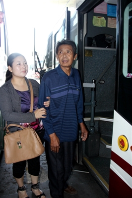 昨日上午8时,54岁的龚元根老人在本报记者和爱心人士徐女士的护送下,在泉州登上了返乡的汽车。临行前,龚元根借助本报向帮助他的石狮爱心人士表示感谢。