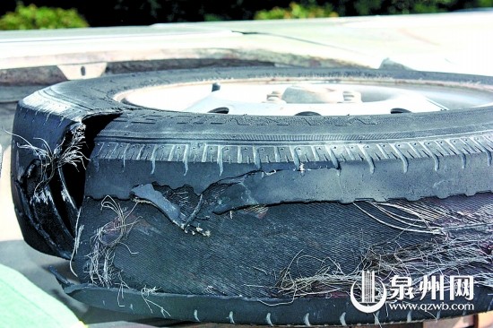 轮胎磨光致爆胎 泉三高速一面包车翻车司机受伤