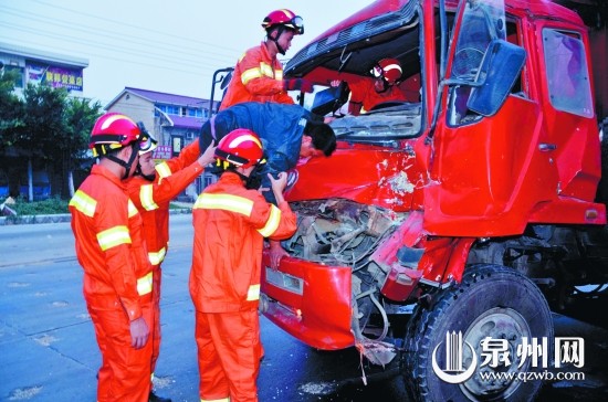 国道324惠安段两车追尾 一司机被困15分钟获救