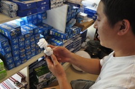 空调节能意识提升,那么日常照明灯具虽然不是耗电之王,市民在选购上是否也有所注重呢?记者在东港路一家照明电内,发现店主将节能灯摆放在显眼位置。