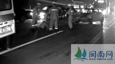 泉港消防南埔中队接警后,前往现场救援。消防员在现场发现,被撞倒的2人伤势较重,其中1名女子被甩到高速护栏外坡下小道上,昏迷不醒,另一男子浑身是血,且多处骨折;奇瑞QQ的司机腿部骨折。3名伤者被迅速送医。