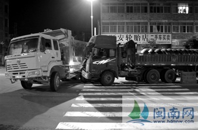 晋江一牵引车撞上正掉头的渣土车 致两人受伤
