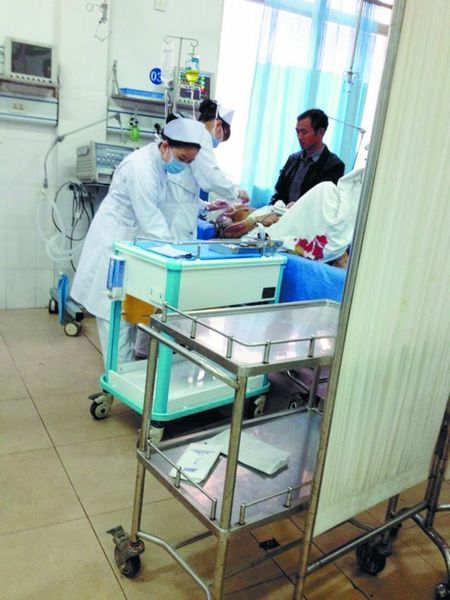 昨天下午3点,在一院急诊室内,曹先生浑身是血,不时发出痛苦的呻吟,他的腹部被一块大纱布覆盖着。