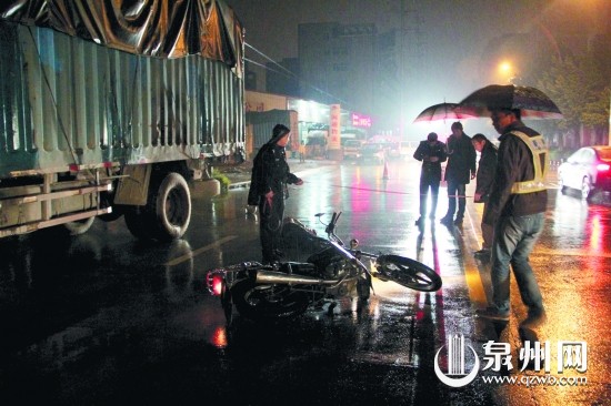 撞上路边的货车 石狮一摩托车骑手当场身亡