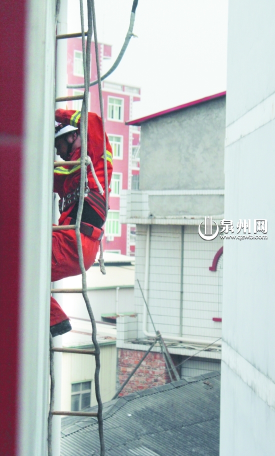 晋江8岁小孩被困屋主舍不得拆门 消防空降救人