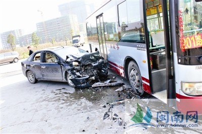 泉州普贤路高铁站进站口小车公交相撞 4人受伤