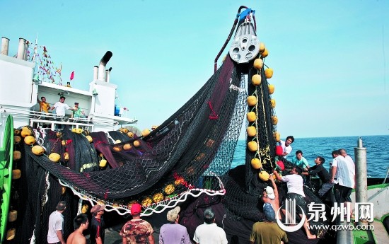 海洋经济已成为泉州国民经济的重要支柱产业之一。图为一艘渔船正在进行捕鱼作业。 (张九强 摄)