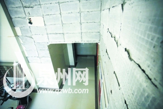 早报讯 (记者许奕梅 戴晓晖 文/图)“瓷砖一块块往下掉,真担心哪天家人经过时被砸伤。”近来晋江兰峰城市花园住户林先生,每次回家都提心吊胆。原来,他家所在居民楼一楼楼道的墙壁瓷砖不知何故大面积掉落,而其他居民楼楼道墙面瓷砖也出现不同程度的掉落。为此,小区业主委员会正在跟开发商协商解决方案。