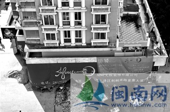 市民王先生:市区泉秀街中远名城有一处正在装修的店面,占用了店面阁楼处的公共走廊,侵犯了其他业主的权利。虽然这个店面另行开了条走廊,但很狭窄,又是半封闭的。
