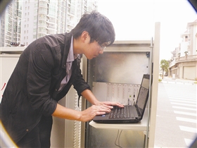 昨日下午,在宝岛路与福辉路的路口,记者看到,市交管大队工作人员与技术人员正在调试该处的红绿灯秒数。据工作人员介绍,在今年新增的22个“电子警察”中,福辉路7个已经建成,目前正在调试阶段,近期即可投入使用,其余15个近日也将进行招投标。